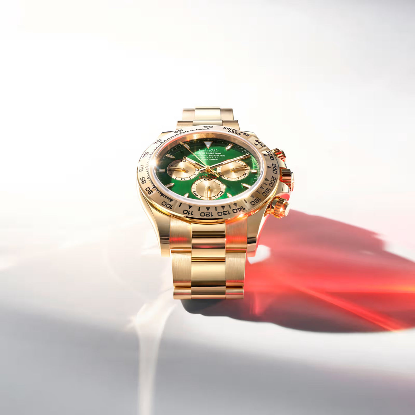 Adorned with sapphire crystal on the front and a clear sapphire case back so you can admire the mechanical movement. The Tachymeter bezel is made from Ceramic.